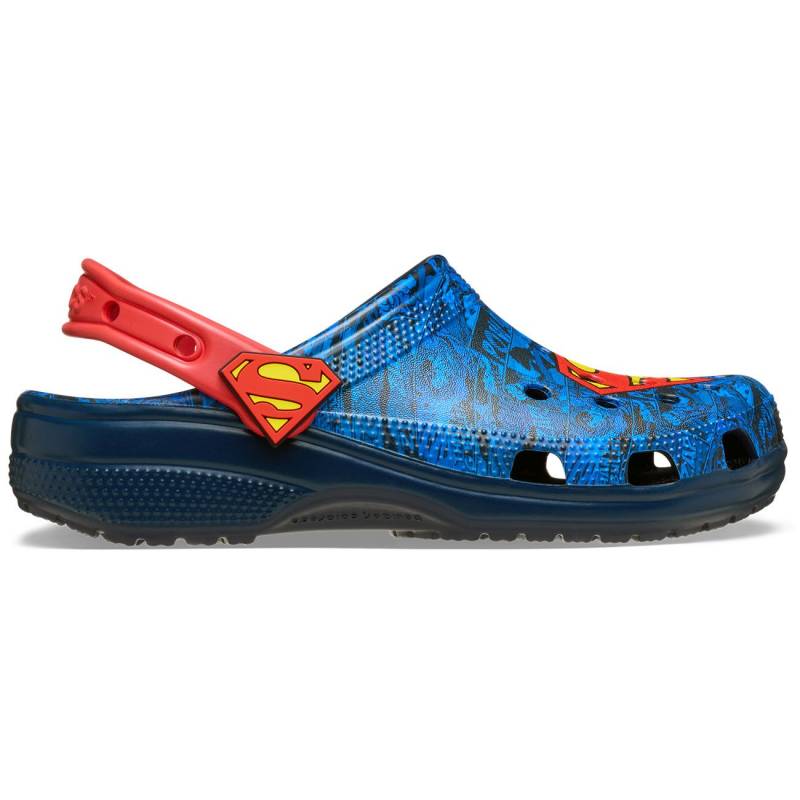 Ya está aquí la colección Superman. Y este clásico zueco se inspira en el superhéroe por excelencia. Un estampado de cómic que cubre toda la superficie sirve de fondo. Pero el verdadero protagonista del diseño es el escudo con la «S» de Superman, presente en la parte superior y en los remaches. Es estilo con mayúsculas.